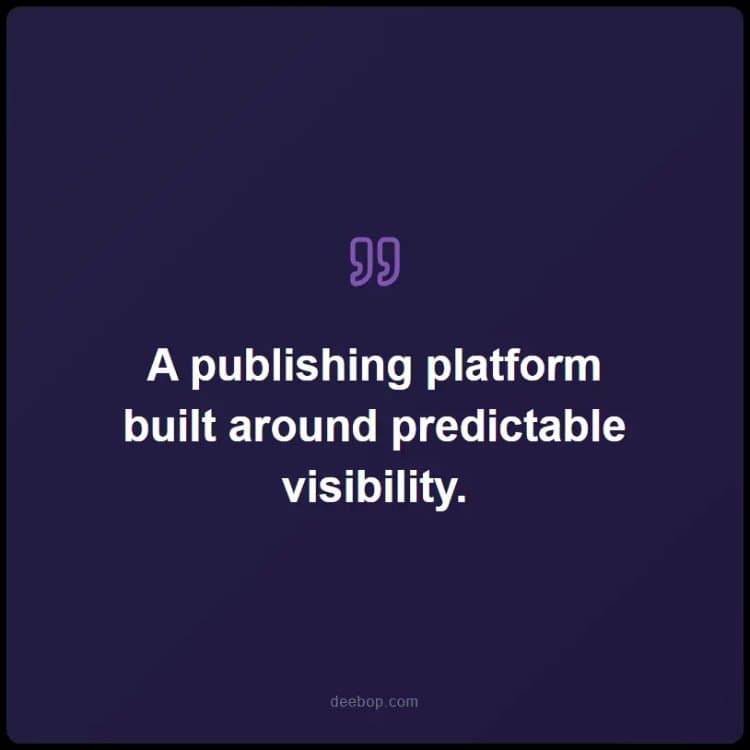 On Deebop, you hit publish and know. No algorithm deciding your reach. No volatility from post to post. No guessing whether your work will be shown. Predictable visibility. That is the foundation. #Deebop #PredictableVisibility #PublishWithClarity #CreatorPlatform #NoAlgorithm #PublishCalmly